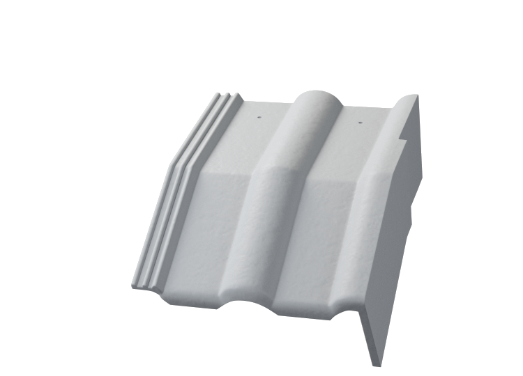 Ukončení hrany střechy u pravého štítu řeší taška lomená okrajová pravá. Při objednání prosím uveďte požadovaný úhel lomu.
