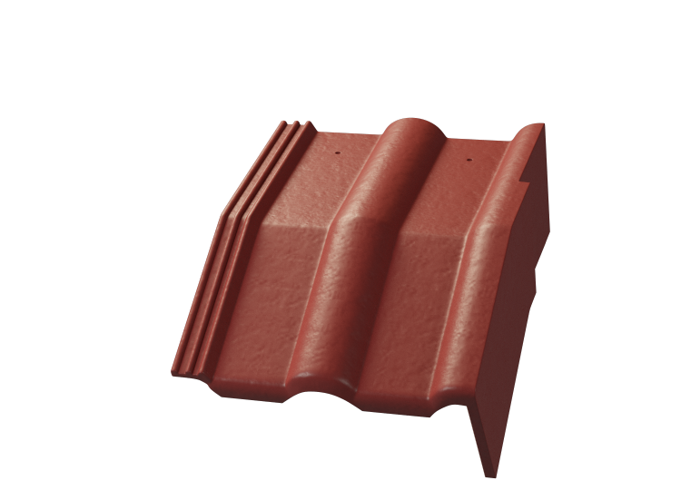 Ukončení hrany střechy u pravého štítu řeší taška lomená okrajová pravá. Při objednání prosím uveďte požadovaný úhel lomu.