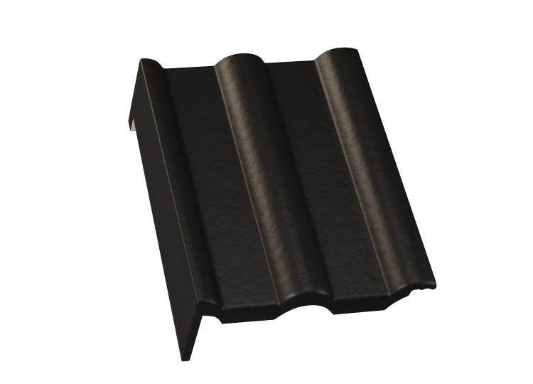 Střešní taška okrajová levá, ze střešního systému Beta, slouží k ukončení štítové hrany střechy bez potřeby oplechování.