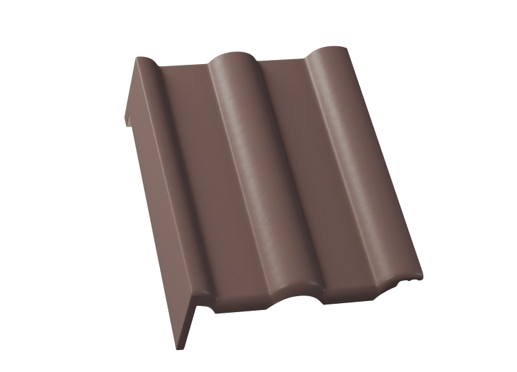 Střešní taška okrajová levá, ze střešního systému Beta, slouží k ukončení štítové hrany střechy bez potřeby oplechování.