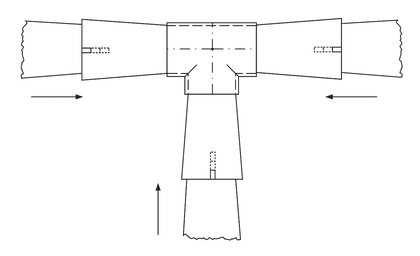 Typový prvek pro bezpečné uzavření místa spojení tří hřebenů vedoucích v jedné výškové rovině střechy.
