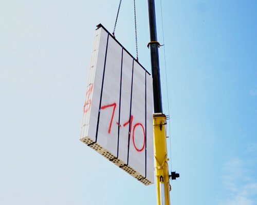 Na zaměřenou základovou desku se vyznačí poloha stěn a umístí se distanční podložky. Na připravený podklad se jednotlivé stěny ukládají jeřábem. Svislé vyrovní se provádí pomocí šikmých vzpěr. Po zajištění prostorové stability, například po zhotovení stropní desky nebo ztužujícím věncem se šikmé vzpěry odstrání.