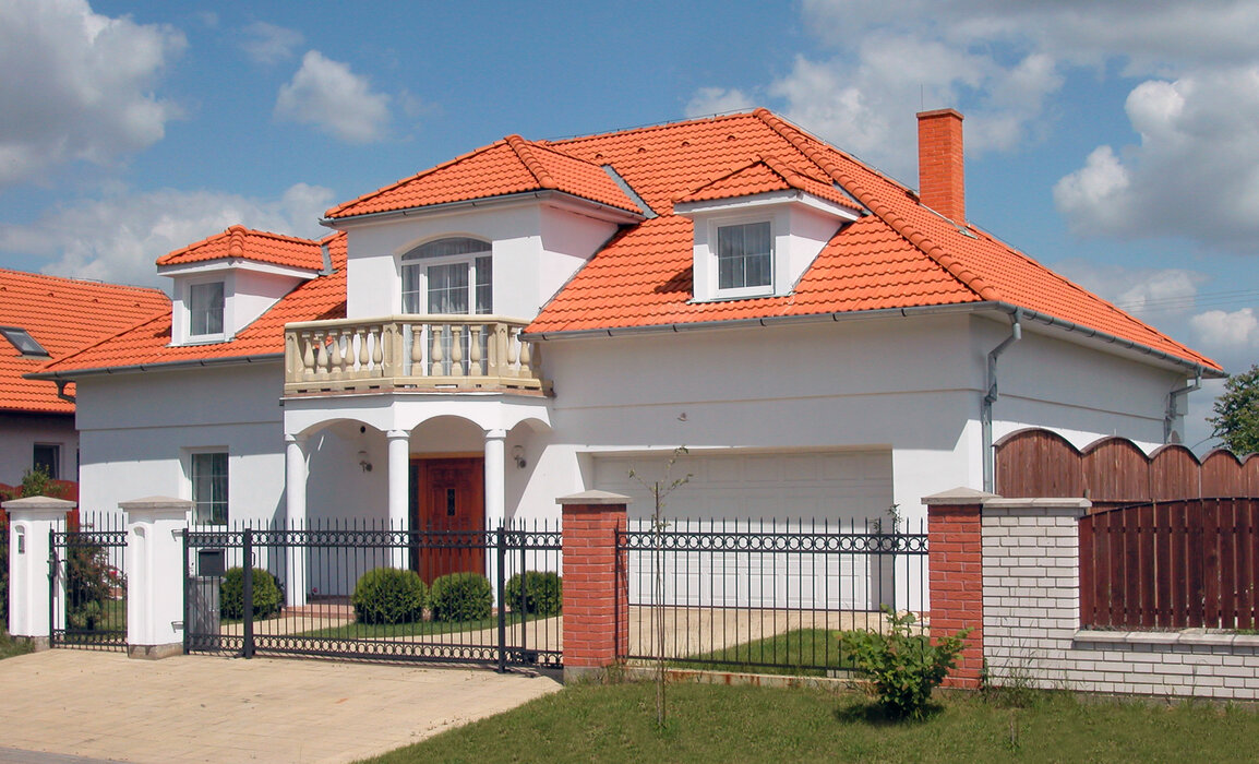 Bílá fasáda domu dodává lehkost, vzdušnost, kterou podtrhuje střecha v cihlové barvě. Jemné detaily ozvláštňují celou stavbu, ale neruší. Dům působí důstojně, ale přesto lidsky. Je to ten typ domu, který se člověku zaryje do paměti, i když kolem něj jen projde.